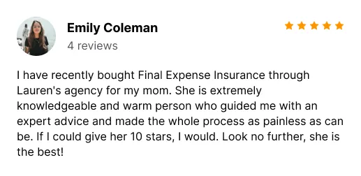 Appointed by over 30 carriers, which means she can find you a good solution even you don't have perfect health.